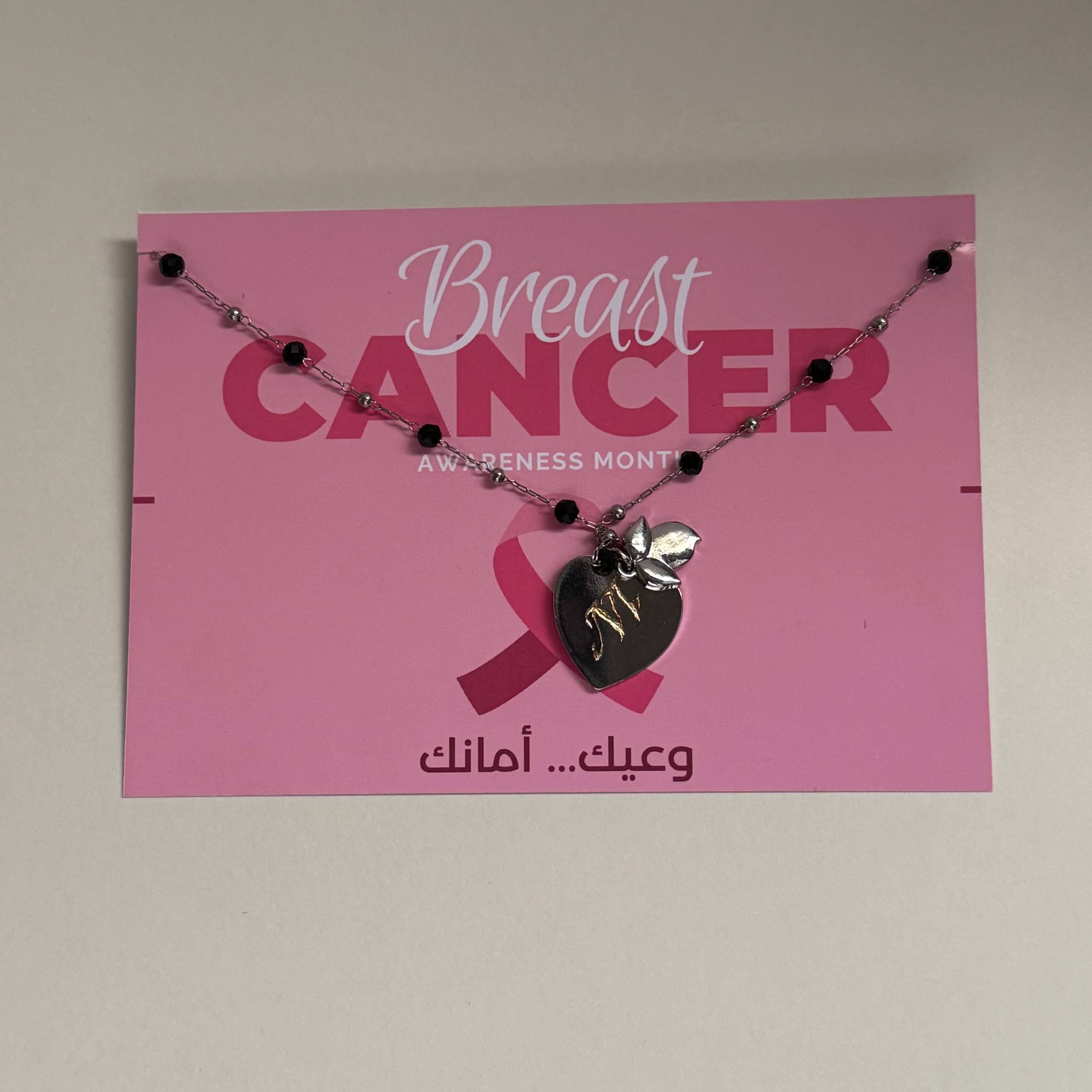 توزيعات سرطان الثدي - سلسال أنثوي أنيق بتفاصيل متقنة، يجمع بين سلسلة ذهبية ناعمة وخرز صغير باللونين الأسود والذهبي، تتدلّى منها تعليقة قلب محفور عليه ورقة شجر بتصميم فني راقي. القطعة تنبض بأنوثة هادئة وتفاصيل فخمة، وتجي داخل علبة أنيقة، مثالية كهدية أو لمظهر يومي راقٍ.